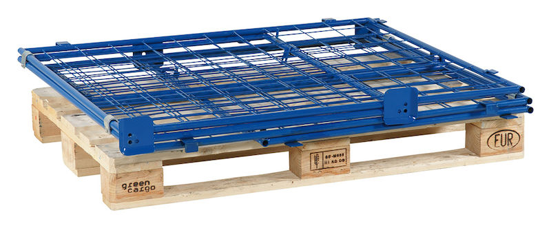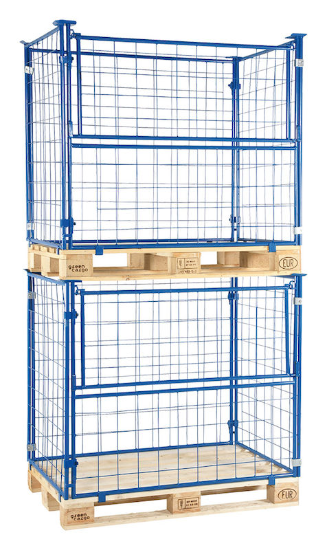 Stabil og robust palleramme i lakkert stål. Lett og enkelt å montere helt uten verktøy. Spar lagringsplass ved å stable burene oppå hverandre.Nedfellbar langside.