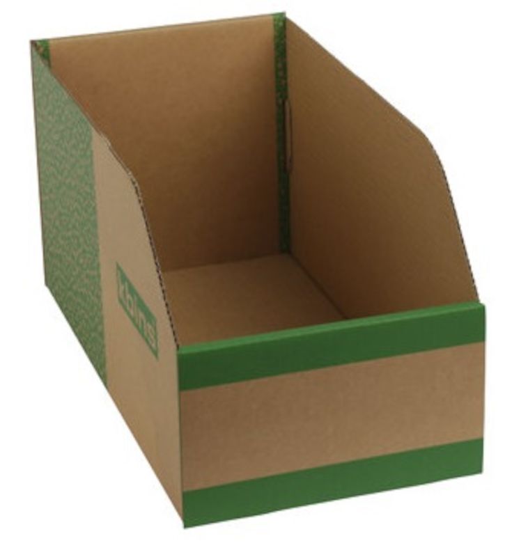 Lagerboks Emmer i papp, sammenleggbar, LxBxH 400x200x200 mm, 25-pakk. Leveres flatpakket, noe som sparer plass og kostnader. Settes sammen på noen sekunder. Av kraftig wellpapp. Alle oppgitte mål er utvendige mål.