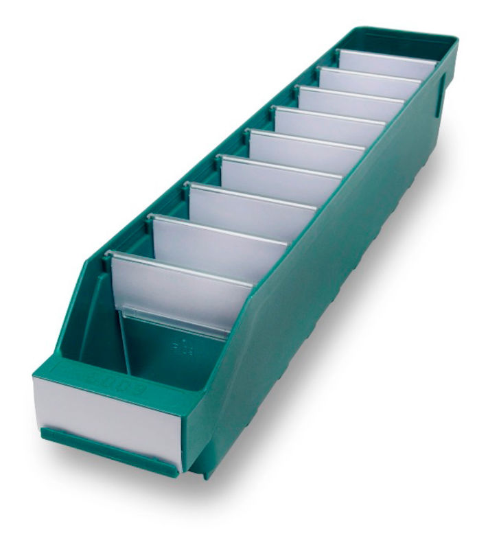 Tilbehør: Transparente avdelere, holdere inklusive etikett og boksestopp.