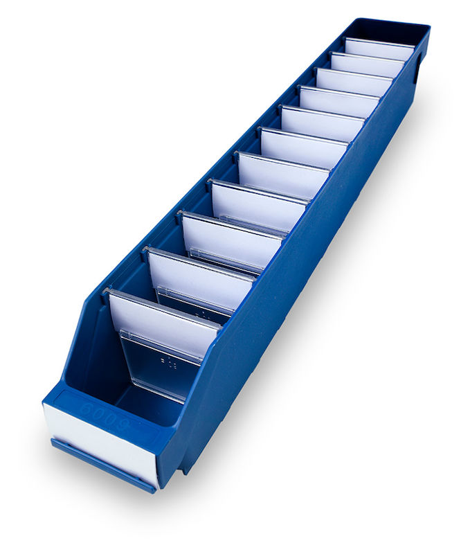 Tilbehør: Transparente avdelere, holdere inklusive etikett og boksestopp.