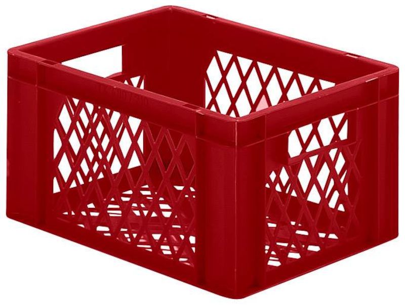 Plastkasse Teff, perforerte vegger og bunn, LxBxH 400x300x210 mm, rød, 5-pk, næringsmiddelgodkjent. For nesten alle behov på lageret, i produksjonen og ved transport. Av høyverdig, næringsmiddelgodkjent polypropylen. Høy stabilitet. Temperaturbestandig fra –20 °C til +60 °C kortvarig til +90 °C. Bestandig mot de fleste syrer og lut. Størrelser avstemt til pallemål 1200 x 800 mm og 800 x 600 mm. Egnet til rullebane. Kan også uten problemer stables med lokk. Du mottar beholderne i økonomiske pakninger.