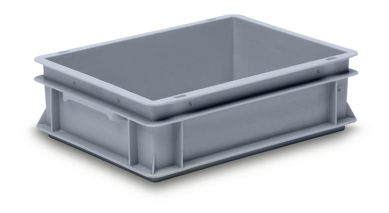 Stabelbar eurokasse i polypropylen Alfred, lastekapasitet 20 kg, sølvgrå, volum 10 l, utvendig høyde 120 mm, 8-pk.