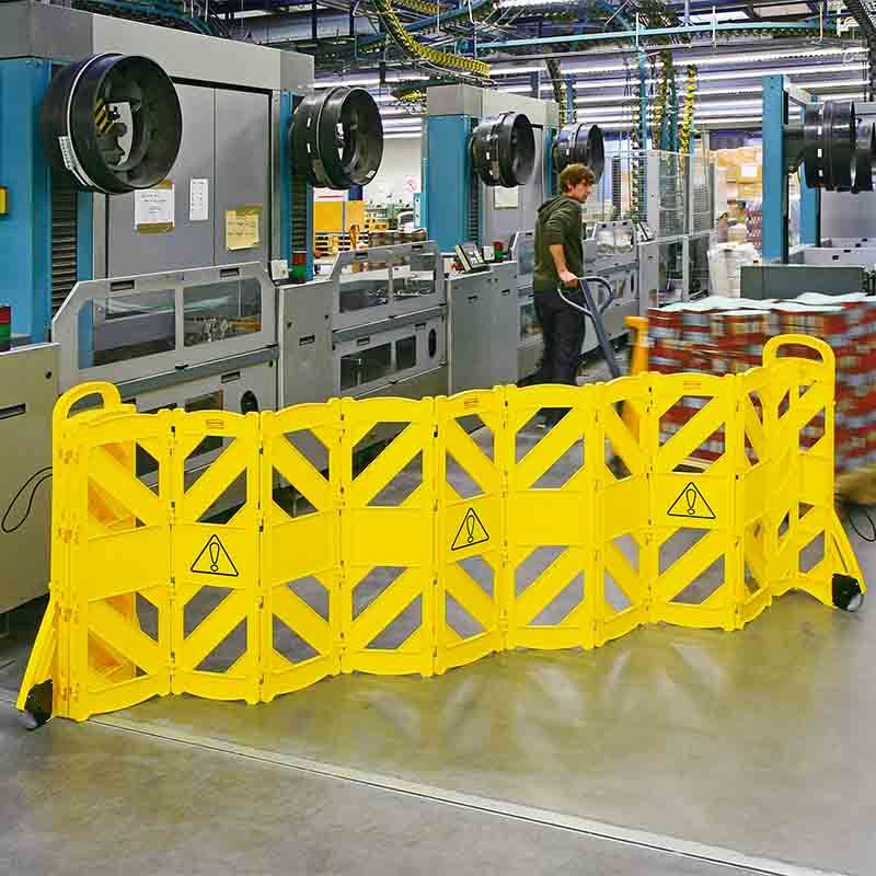 Avsperringsgjerde Toumi. Sammenleggbart avsperringsgjerde i 16 deler som er mobilt og enkelt å flytte på med hjul eller felle sammen. Produsert av polyeten av høy kvalitet. Praktisk og plassbesparende lagring. Kan enkelt tilpasses det området som skal avsperres. Farge gul.