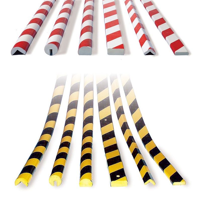 Beskyttelsesprofil, rørbeskyttelse. Finnes i ulike lengder og utførelser. Av gjenvinningsbar PU-skum. Egnet til innen- og utendørs bruk. Veldig lang levetid med kraftig advarsel markering. Skjæres til i ønsket lengde, fleksibel. Branntestet iht. DIN 4102 B2. Temperaturbestandig fra -40° C til 100°. Selvklebende. Advarsel og beskyttelsesprofiler absorberer harde støt og markerer risikoområder. Den svarte/gule markeringen iht. BGV A 8 på profilene, advarer ved risikofylte plasser, ved kanter, hull, hindringer, og minsker skader ved fall og kollisjoner. Profilene kan brukes praktisk talt overalt, f.eks. ved interne transportvogner innen bedriften, på maskiner eller kjøretøy, på vegger, i korridorer og på dører. Veldig fleksible med advarsel markering som beskytter mot avskalling. Leveres i 1-meterslengder, i 5-meters ruller i praktisk transport bag eller kappet individuelle lengder (minimum 1 meter).