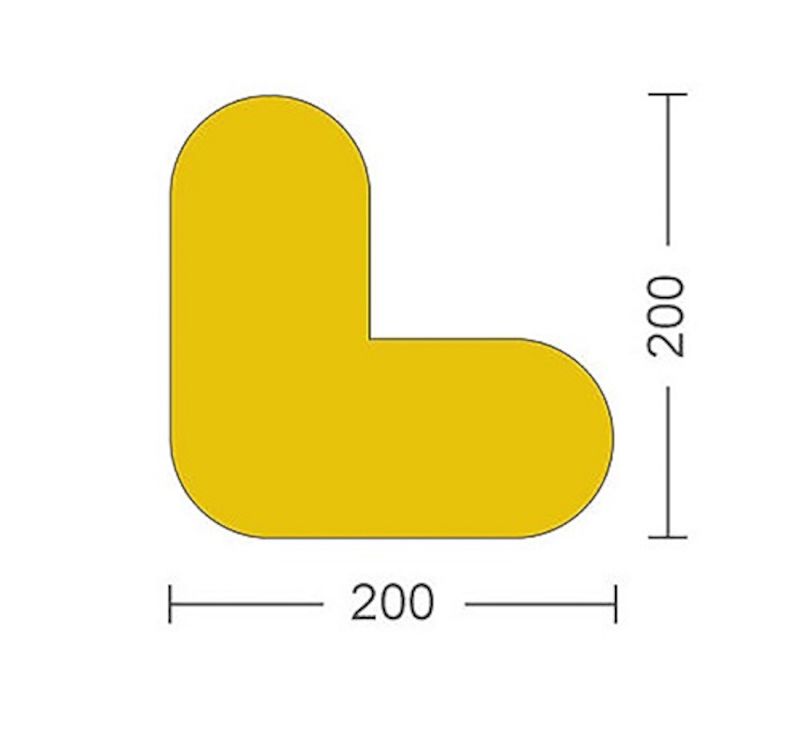 Gulvmarkering symbol L. Til oppmerking av pallplasser direkte på gulvet. Selvklebende i laminert vinyl som tåler å bli kjørt over av trucker. Markeringen plasseres på rett og tørr flate.