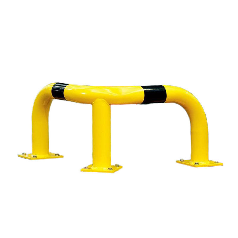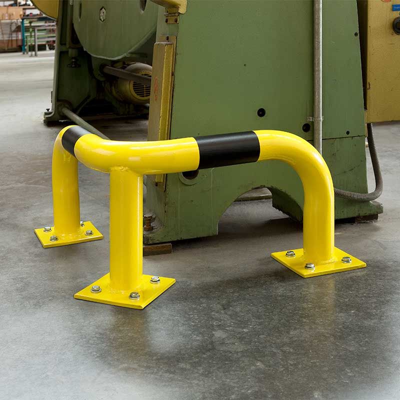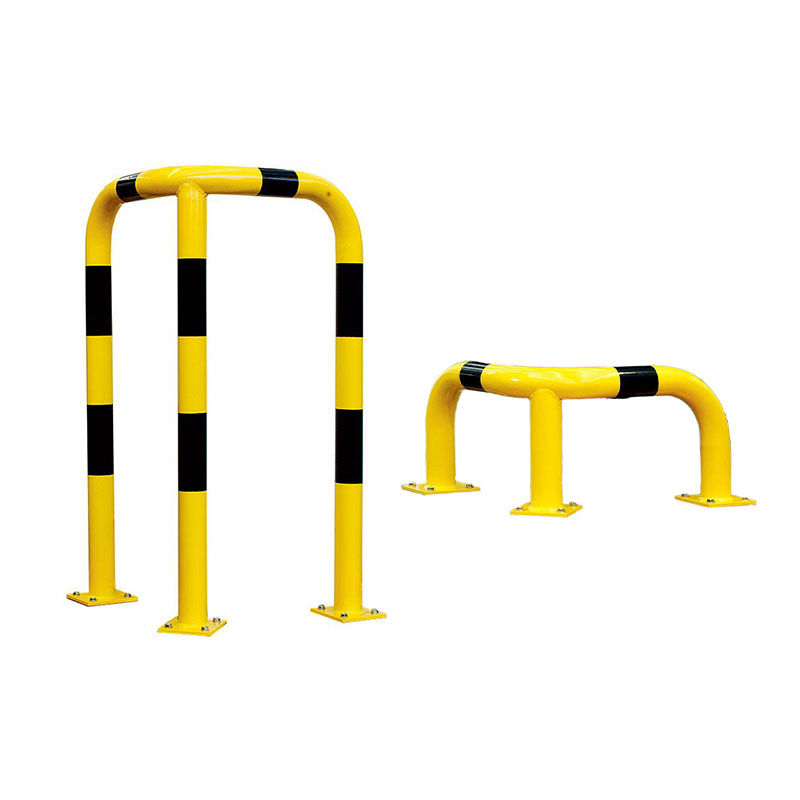 Påkjøringsvern med kraftige bøyler av stål, tilpasset for hjørne. Påkjøringsvernet er laget av høykvalitets stål og har en jevn bøyning – ingen sveisesømmer. Bunnplater som kan boltes fast. Påkjøringsvern for innendørsbruk er grunningsmalte, for utendørsbruk varmgalvaniserte. Alle har gul plast med svarte signalstriper. Bøyle Ø 76 mm, godstykkelse 3 mm.