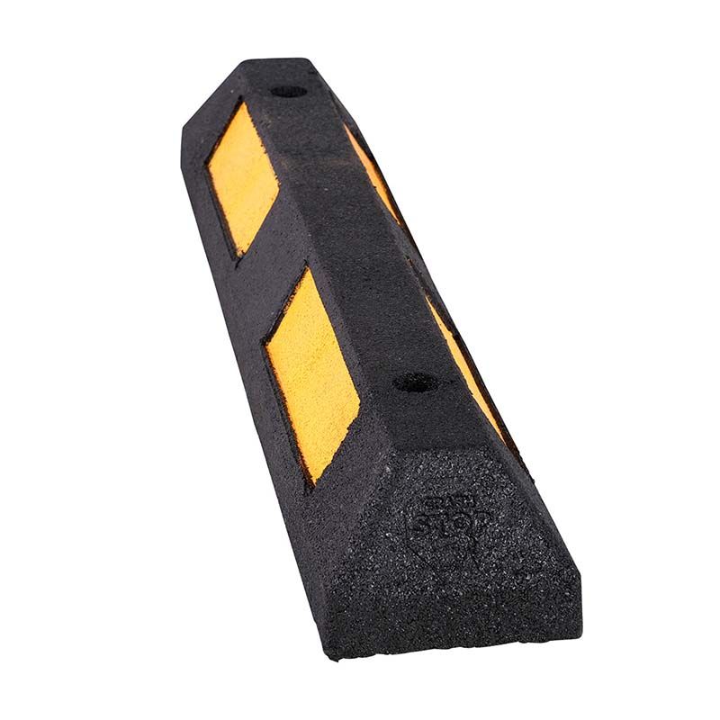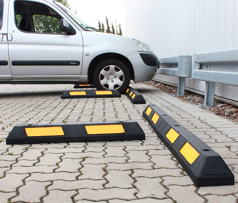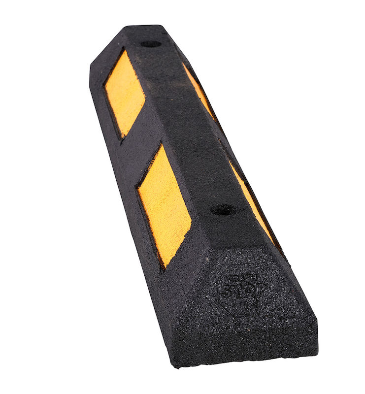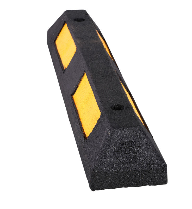 Parkeringsstopp Tavek, LxBxH 870x152x102 mm svart/gul. Parkeringsstopp Tavek beskytter på en enkel måte både biler og bygninger. Hindrer at biler begynne å rulle. Brukes for å organisere parkeringsplasser og garasjer. Parkeringsstopp i gummi, i nytt materiale med lang levetid. Gul reflekterende folie på begge sider for bedre synlighet. UV-stabilisert gummi som tåler både vinter og sommer, passer like bra innen- som utendørs. Med 2 eller 4 hull for feste. Kan også brukes som påkjøringsvern på lasteramper og bygninger. Bruk 2 skruer ved montering.