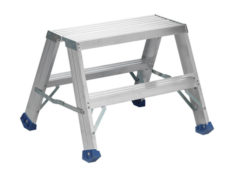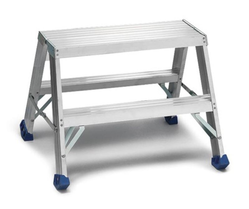 Arbeidsbukk, aluminiumsbukk med riflede trinn, 2 trinn. Stabil aluminiumskrakk med riflede trinn.
