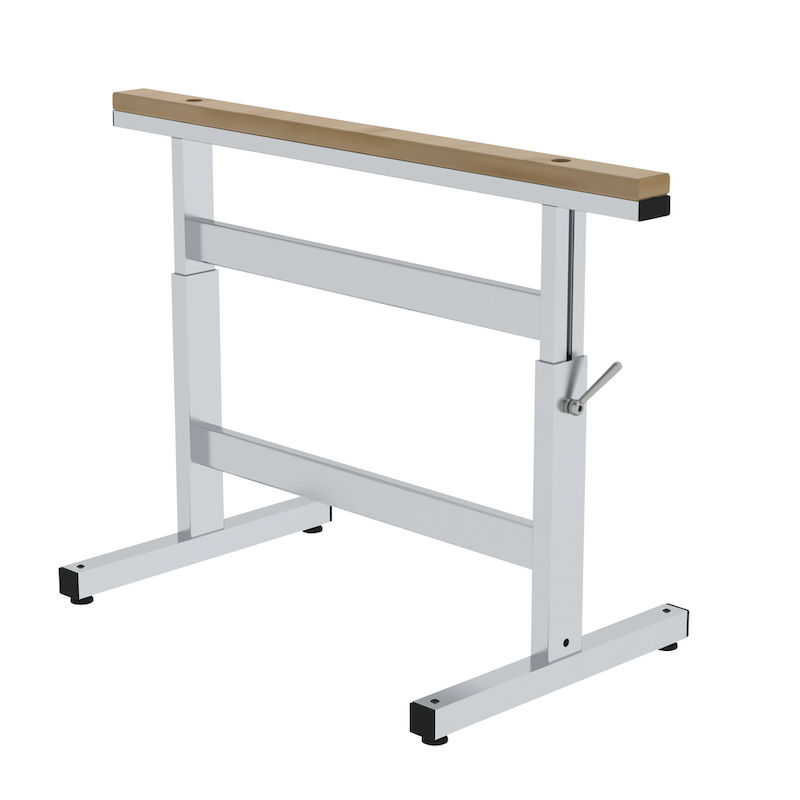 Høydejusteringen er trinnløs i området 700 til 1000 mm. Underlaget består av en utskiftbar slitepute i furu med målene 1000 x 60 x 25 mm.