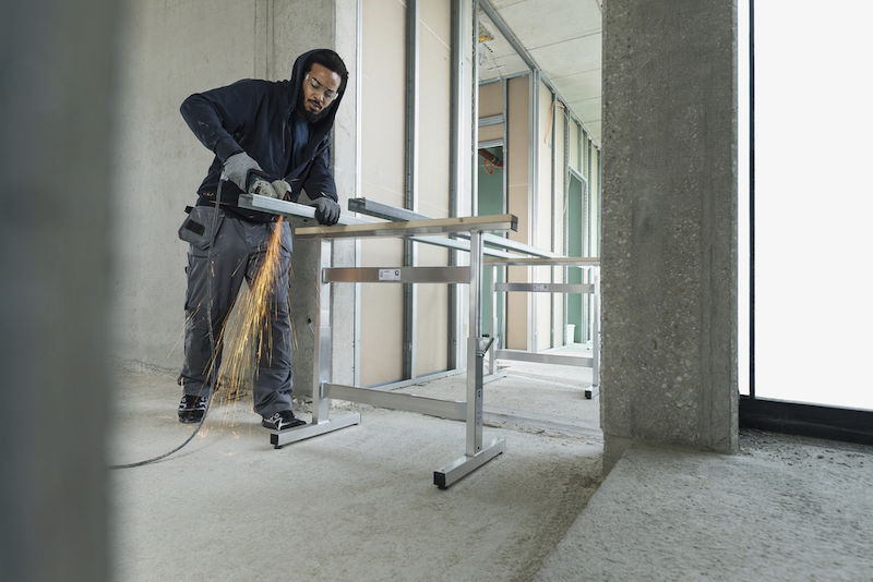 For stabilitet er bukkene utstyrt med tverrstivere på begge deler. Støttebena har stilleskruer for nivåutjevning. Høyden låses med kjeglehåndtak på justeringsrørene. Endene på bukkene er utstyrt med deksler. Arbeidsbukkene kan belastes med maksimalt 250 kg.
