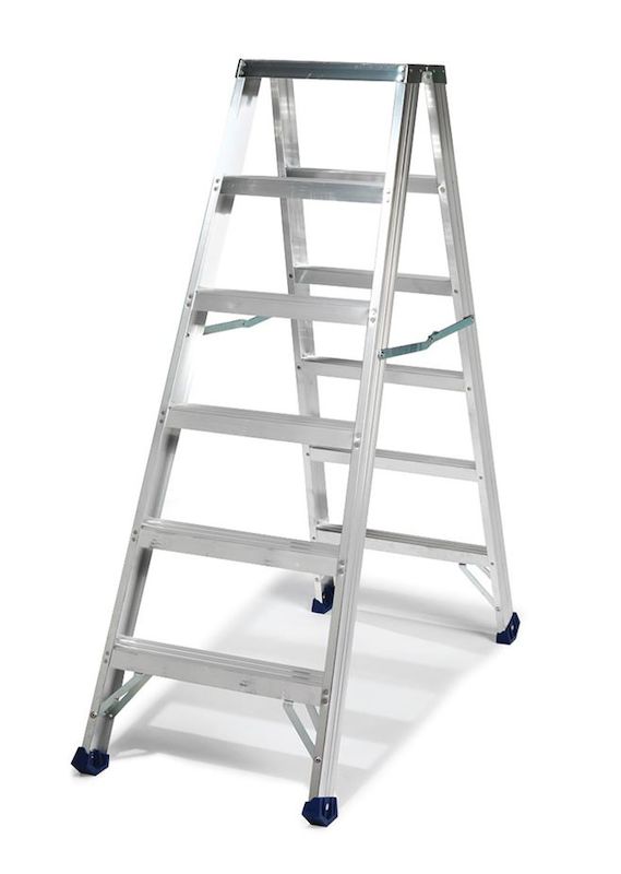 Dobbeltsidig trappestige med kraftig riflete trinn, noe som gjør stigen ekstra sklisikker. Plattform 385x250 mm, trinndybde 81 mm. Finnes i flere størrelser. En kvalitetsstige fra svenske Skeppshultstegen.