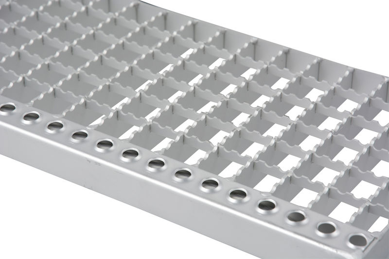 De riflede aluminiumsgittertrinnene oppfyller sklihemmingsklasse R 13 i henhold til DGUV regel 108-003 og DIN 51130.