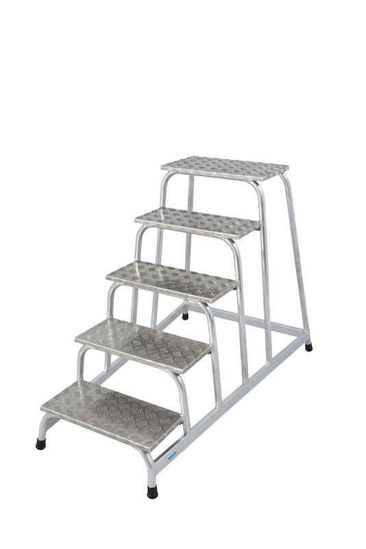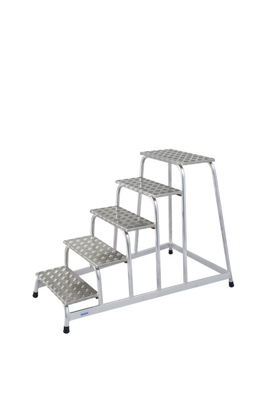 Trappestiger Hildur, aluminiumsplater, riflet på den ene siden, 5 trinn. Sikker løsning for industrielt arbeid i høyden: Trappestigen overbeviser med sin ekstra belastbare og samtidig lette aluminiumsrørkonstruksjon.