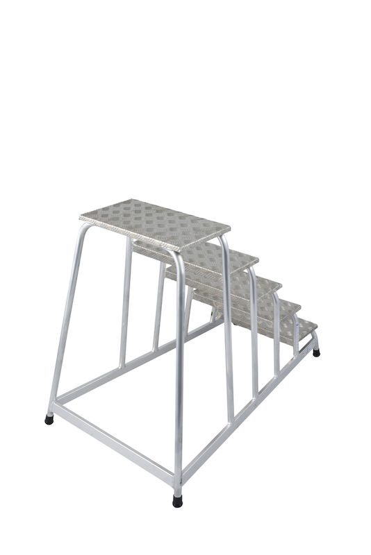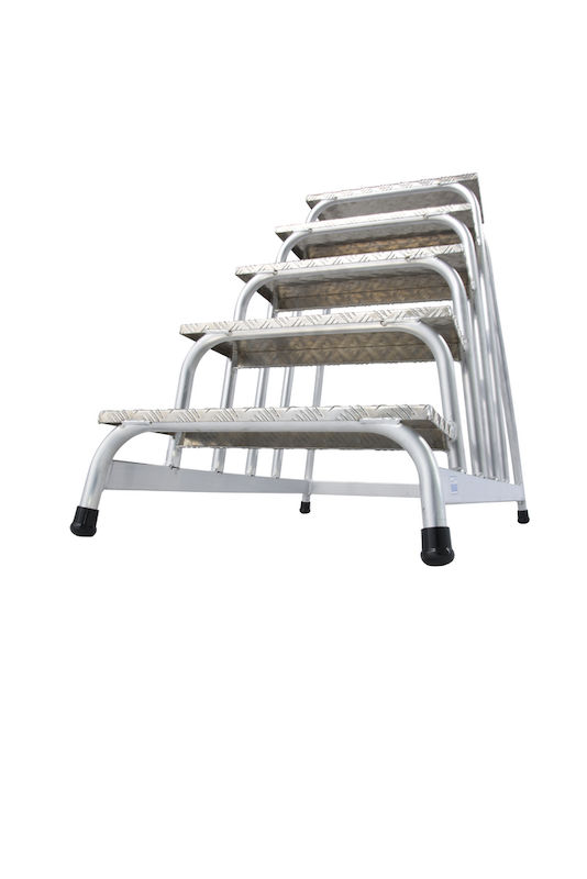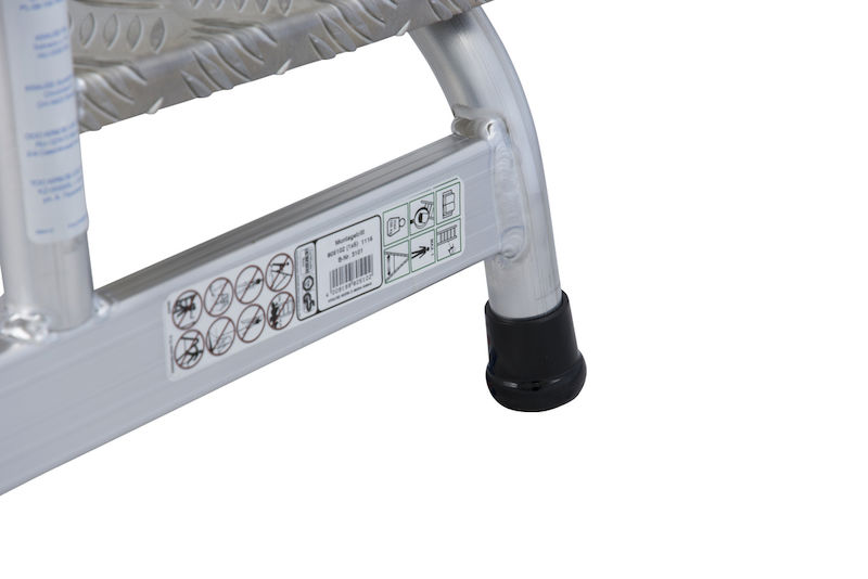 De dype, riflede trinnene og den store standflaten sikrer godt fotfeste – også ved våte eller skitne forhold. Og de sklisikre fotkappene hindrer at trinnet glir på glatte gulv.