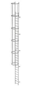 Den fastmonterte fasadestigen i samsvar med DIN 18799-1/-3, DIN 14094-1 og DIN EN ISO 14122-4 gir effektiv fallsikring takket være den faste ryggbeskyttelsen. Robuste materialer og presis produksjon sikrer varig stabilitet og høy bæreevne.
