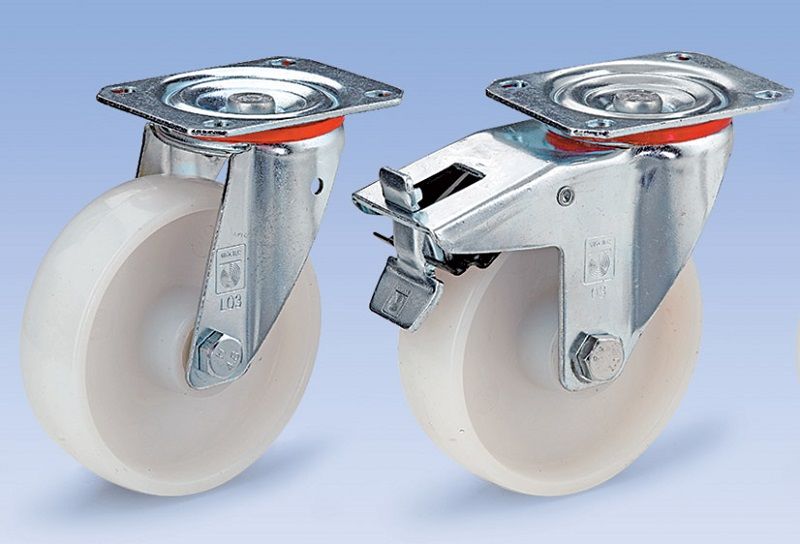 Polyamidhjul i sett, 2 x svingbare hjul og 2 x svingbare hjul med dobbelbrems, rullelager. Vedlikeholdsfritt, lett rulling. Slitesterkt. Vidtgående bestandig mot mange fortynnede syrer og lut Temperaturbestandig fra –20 °C til +80 °C. Hjulhus av galvanisert, forkrommet stålplate, svinglager med dobbel kulekrans, svinglagerbeskyttelse. Særlig rimelig i sett!