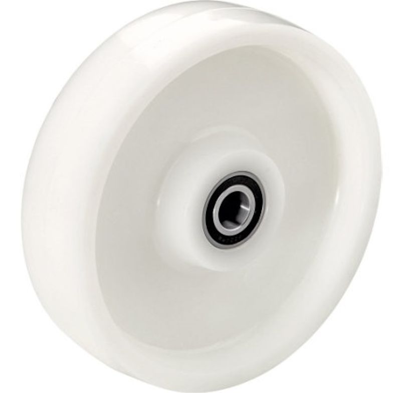 Polyamidhjul, kulelager, hjul Ø x bredde 125 x 40 mm, lastekapasitet 600 kg. Høy slitestyrke Vidtgående bestandig mot mange fortynnede syrer og lut Temperaturbestandig fra –40 °C til +90 °C. Termoplastisk plast på polyamidbasis.