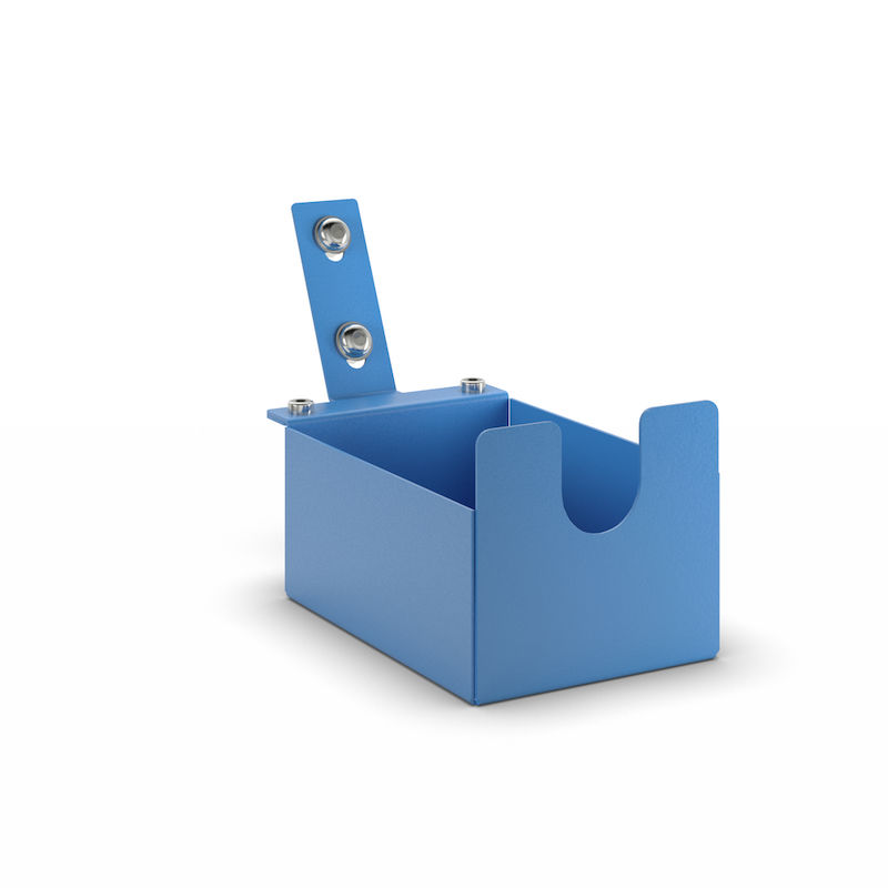 Holder for tapedispenser CustomLine. Praktisk tillegg til mobile arbeidsplasser for pakking av pakker: Holderen for tapedispenseren sørger for orden på arbeidsplassen. Som tilbehør til CustomLine verksteds-/hyllevogner og monteringsvogner kan den festes direkte i hullmønsteret på hullplaten (tilbehør) og er dermed alltid lett tilgjengelig – ideelt for mobil bruk i bedriften.