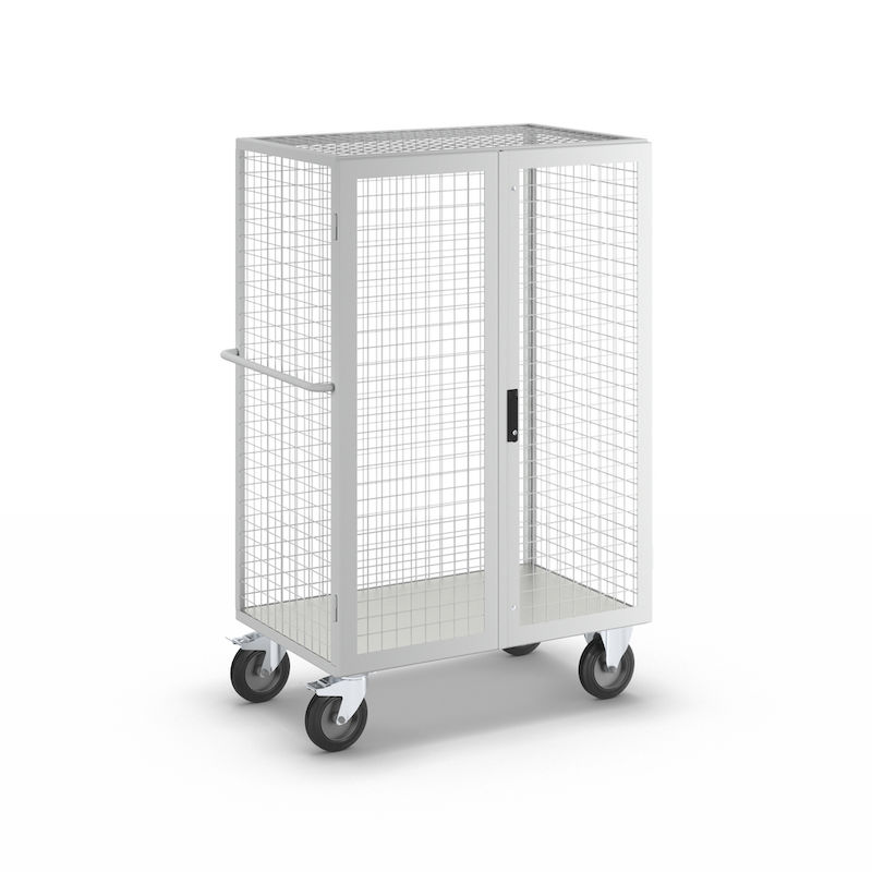 Hyllevogner Abbe. Ideell for midlertidig lagring og transport! ESD-versjon med høykvalitets, elektrisk ledende pulverlakkering i lys grå RAL 7035. Bunnplate av galvanisert stålplate.