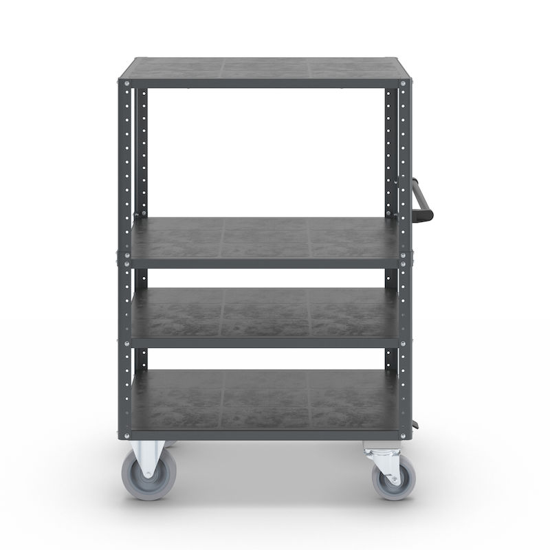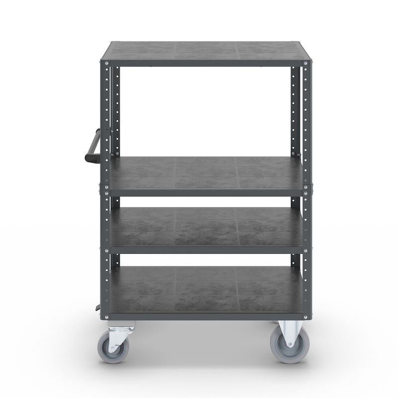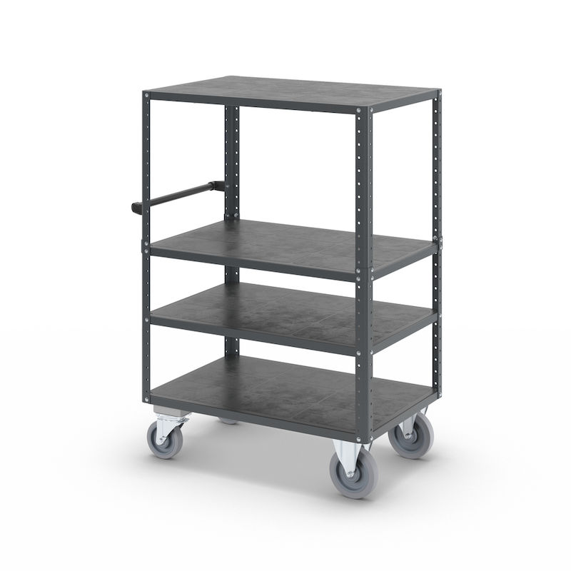 Den enkle og raske individualiseringen av bedriftsprosesser gjør CustomLine vogn til et bærekraftig og kostnadseffektivt alternativ sammenlignet med anskaffelse av et nytt, ekstra produkt. Denne fleksibiliteten sørger for optimal utnyttelse av ressursene, og hvis det trengs reservedeler, er disse alltid tilgjengelig. Hyllevognen er stabil og robust og sørger for trygg transport av komponenter og tunge gjenstander.