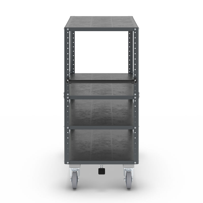 Takket være det intelligente modulprinsippet kan du når som helst endre hyllevognens struktur slik at den passer til dine individuelle behov. Velg blant våre forhåndskonfigurerte elementer med tre, fire eller fem hyller. Eller sett sammen ditt eget unike produkt ved hjelp av tilbehøret. Antall hyller kan utvides med flere nivåer. Hyller i plast gir et sikkert grep om komponentene, og alt holder seg på plass. Eller konverter hyllevognen til en verkstedvogn for å oppnå større allsidighet. Vognen kan tilpasses takket være den modulære utformingen. Ved hjelp av de perforerte profilene kan du enkelt feste hyllene i ulike høyder, slik at de tilpasses til dine komponenter. Tilpass høyden på vognen ved å kombinere hjørnestolper i ulike lengder. Ekstra hyller og hjørnestolper med perforerte profiler er tilgjengelig separat som tilbehør.