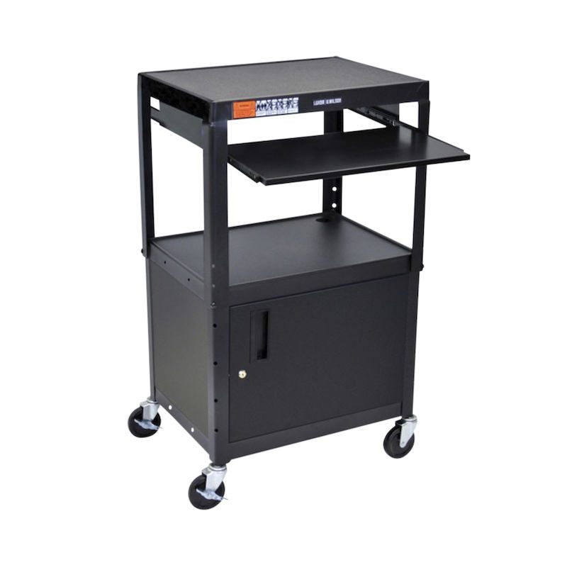 Denne høydejusterbare flerbruksvognen er enkel å manøvrere takket være de fire svingbare hjulene, og de to innebygde parkeringsbremsene låser den raskt på plass ved behov.