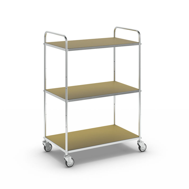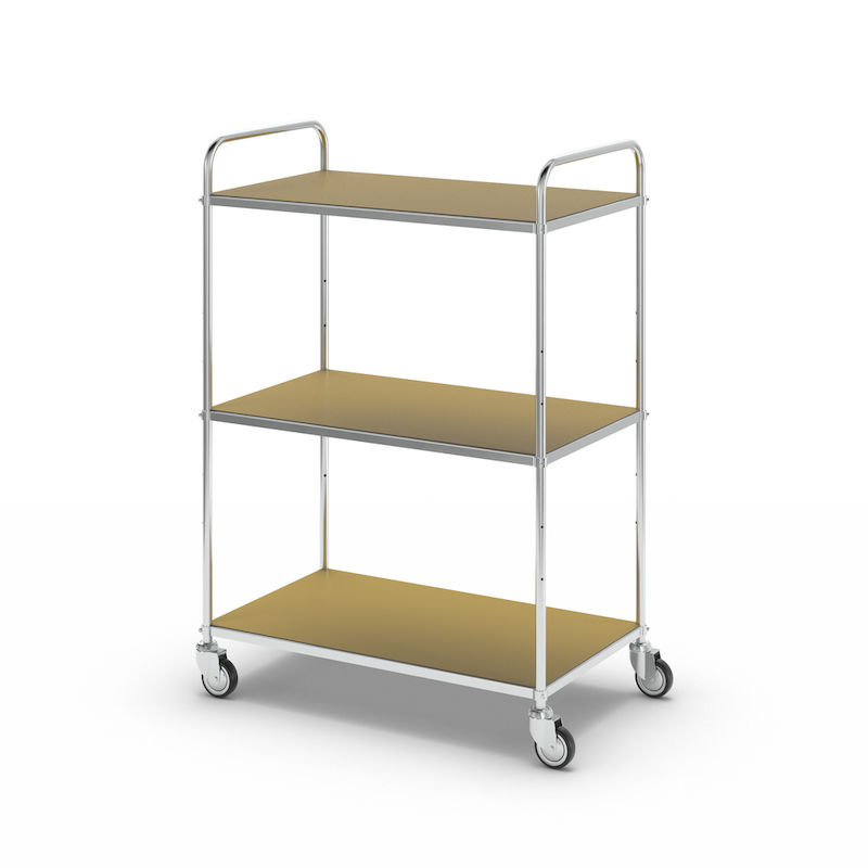 ESD-hyllevogner Telma ESD, 4 svingbare hjul, 3 hyller, LxBxH 980 x 585 x 1445 mm. Elektrolytisk galvanisert. Hyllebunner, utstyrt med ledende belegg og SP-testet. 4 lettdreide, svingbare hjul, Ø 125 mm.