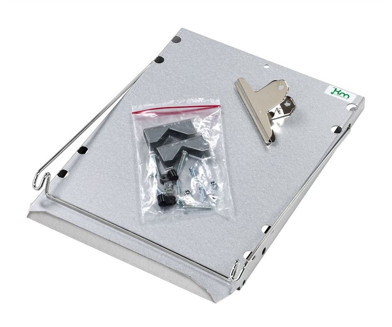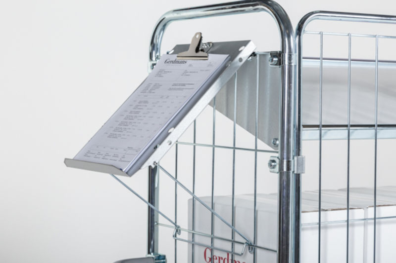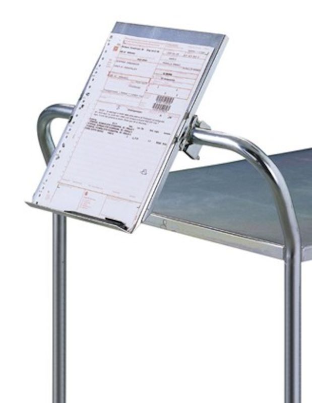 Skriveplate til vogn, HxB 330 x 245 mm, 25 mm dyp kant. Av elektrisk forsinket platestål. Mål: H 330, B 245 mm. 25 mm dyp raskant. Passer til rør Ø 22-30 mm. Inkl. klemme.