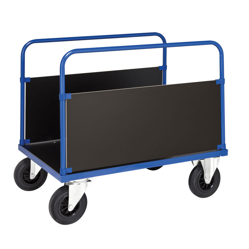 Plattformvogn Uvan med laminat, LxBxH 1200x800x260 mm, blå, 2 sidevegger