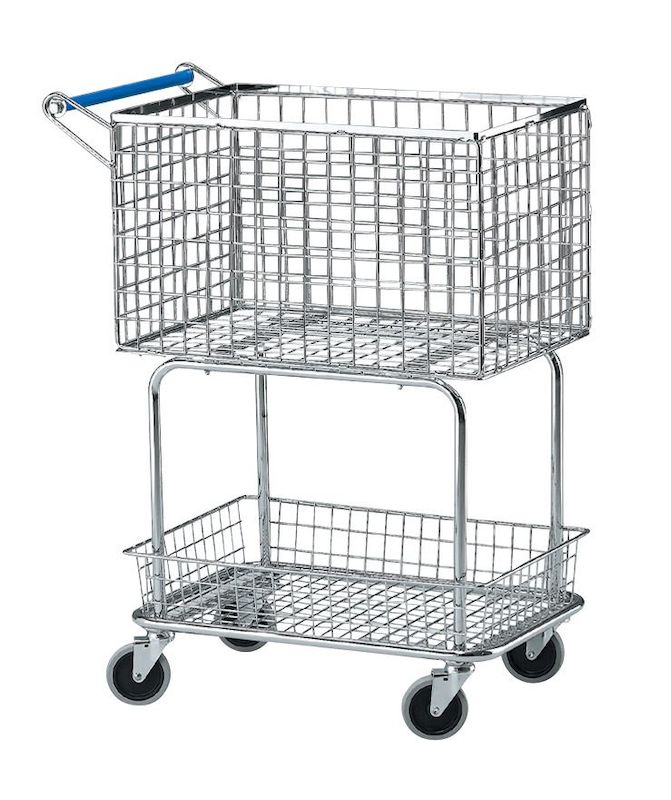 Plukkvogn, med 2 bremsende hjul, to kurver. Praktisk vogn av forkrommede stålrør med to trådkurver. 4 svingbare hjul. Øverste kurvs innermål er LxBxH 600 x 390 x 360 mm. Nederste kurvs innermål er LxBxH 600 x 390 x 120 mm.