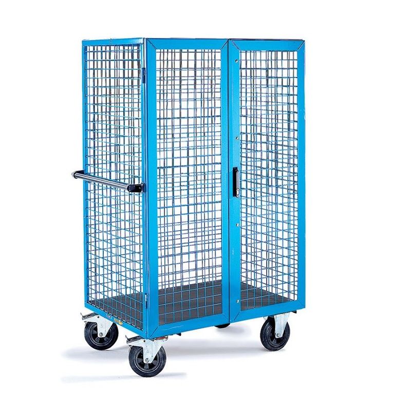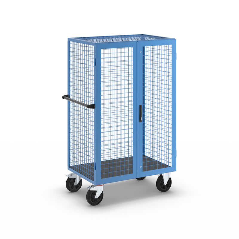 De låsbare pardørene med espagnolettlås og sylinderlås med samme nøkkel beskytter varene dine mot uautorisert tilgang. Dette gjør skapvognen til det ideelle valget for sensitive varer. Låsene er identiske for alle hyllevogner, andre låser er tilgjengelige på forespørsel.