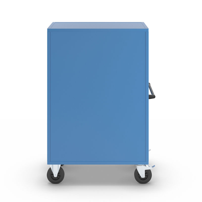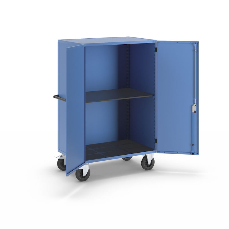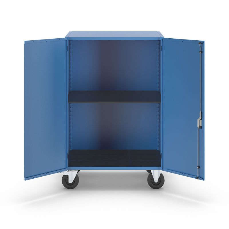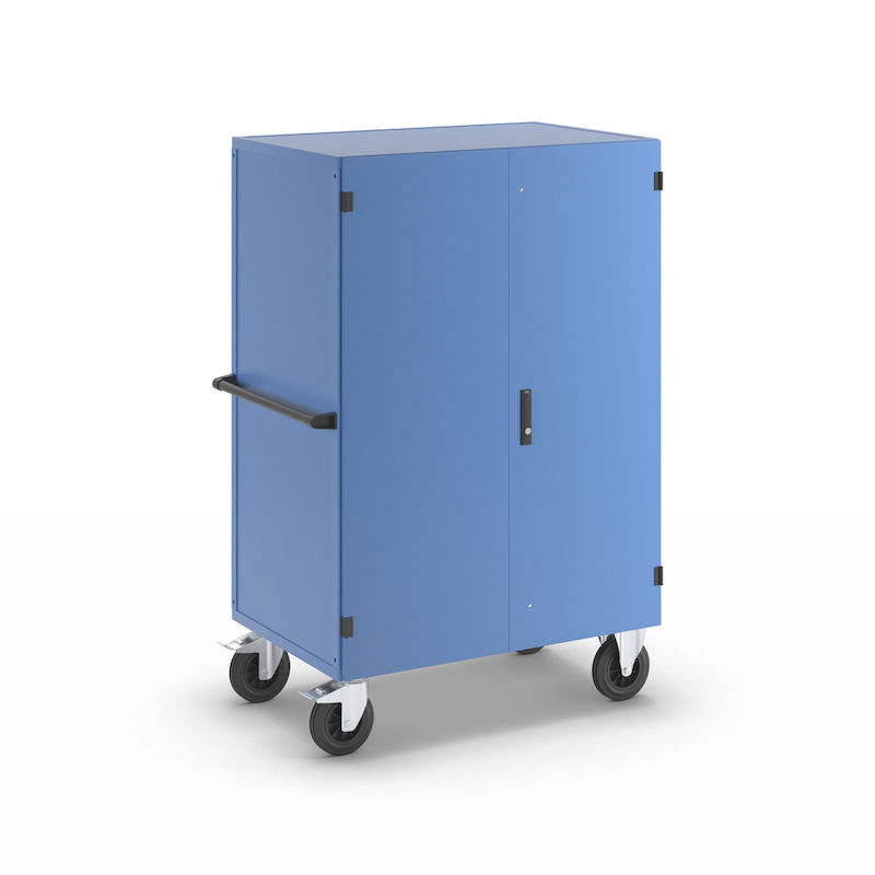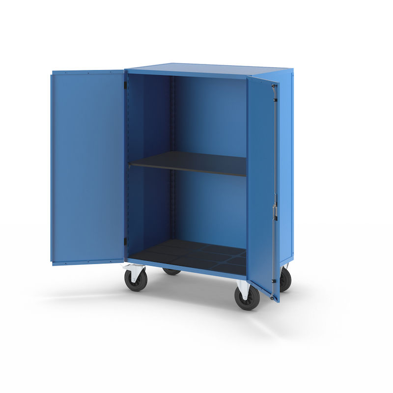 Skapvogner Henrik, med pardør, låsbar, med 1 hylle. Skapvognen eurokraft pro overbeviser med sin sikkerhet og allsidighet. Med en robust stålplatekonstruksjon og kvalitetspulverlakkering er den stabil med lang driftstid. Den platetykke pardøren gir pålitelig beskyttelse mot nysgjerrige blikk. Takket være Basquille-låsen med samme nøkkel er innholdet beskyttet mot uautorisert tilgang. Den sklisikre bunnplaten i resirkulert plast sørger for at innholdet står stabilt. Den slitesterke, vær-, olje- og syrebestandige overflaten gjør den ideell for krevende arbeidsomgivelser. Skapvognen er perfekt egnet for bruk i industrien, i bilverksteder eller produserende bedrifter – en gjennomtenkt løsning for strukturert oppbevaring og transport.
