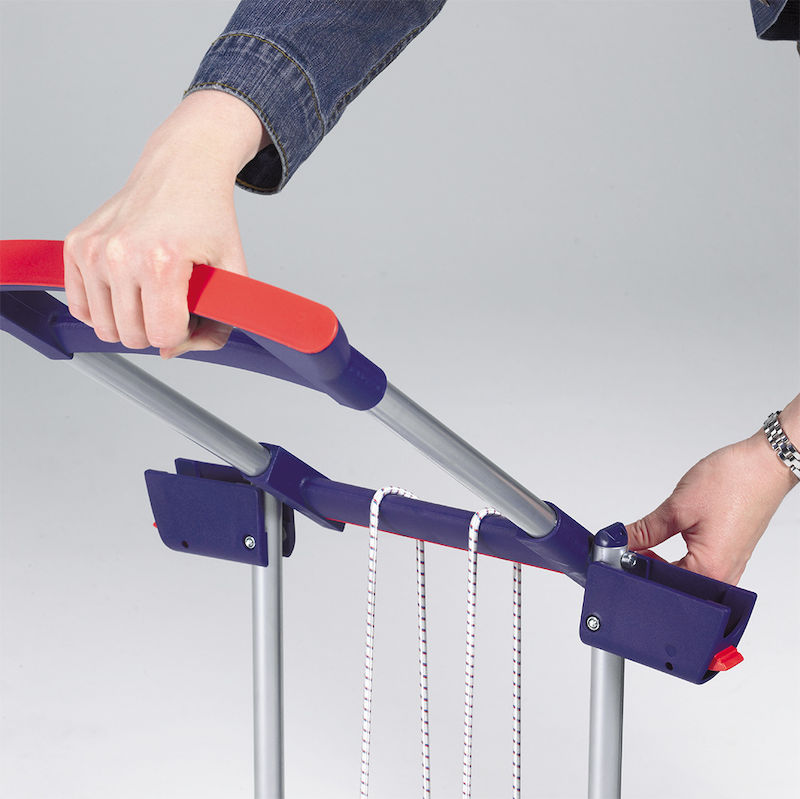 Enkel og komfortabel å manøvrere med et ergonomisk håndtak og en vekt på bare ca. 5 kg. Kan håndtere tunge laster opp til 125 kg. En innovativ lastsikring med stropper gjør den til en utmerket bagasjetralle.