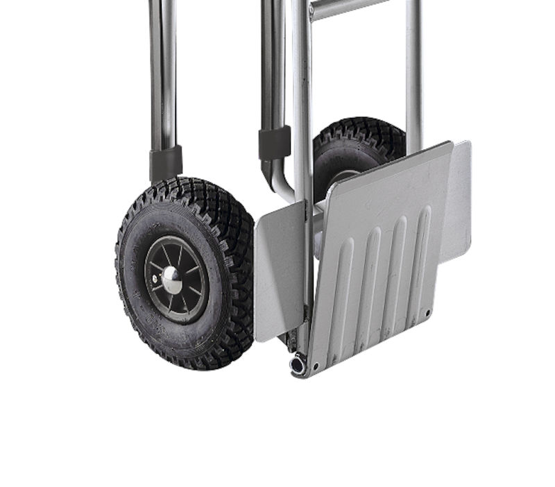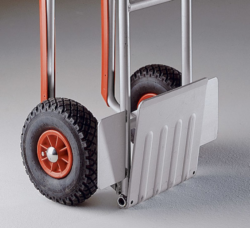 De praktiske, utskiftbare glideskinnene gjør det enklere å transportere tung og klumpete last over trapper og kanter. Integrerte hjulbeskyttere beskytter både lasten og hjulene mot skader.