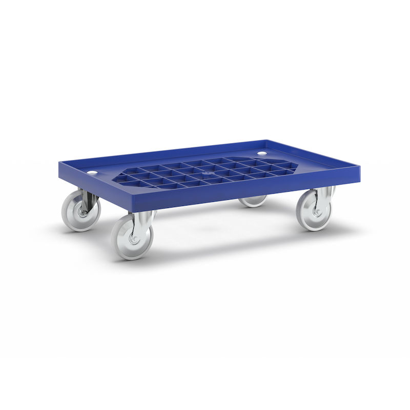 Transporttraller Hannes, gitterlasteflate, hjul av polypropylen, 605 x 410 mm. 4 svingbare hjul med kuleopplagret dreiekrans.