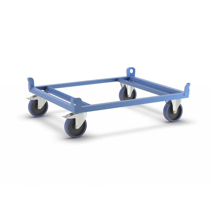 Traller Konrad, for industripaller, lastekapasitet 1000 kg, lastehøyde 280 mm, blå. For paller og beholdere. Robust stålkonstruksjon, pulverlakkert av høy kvalitet i lyseblå RAL 5012.