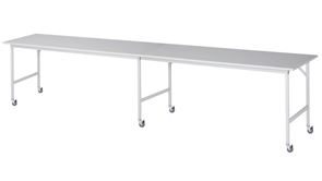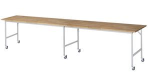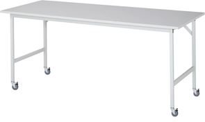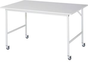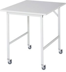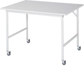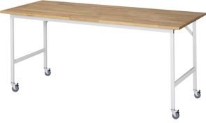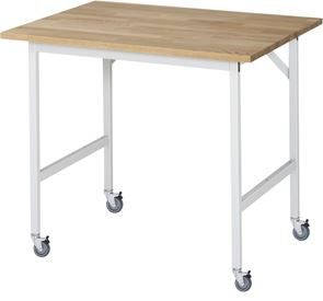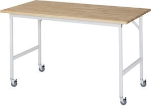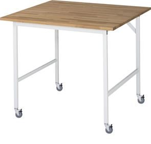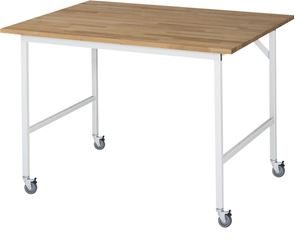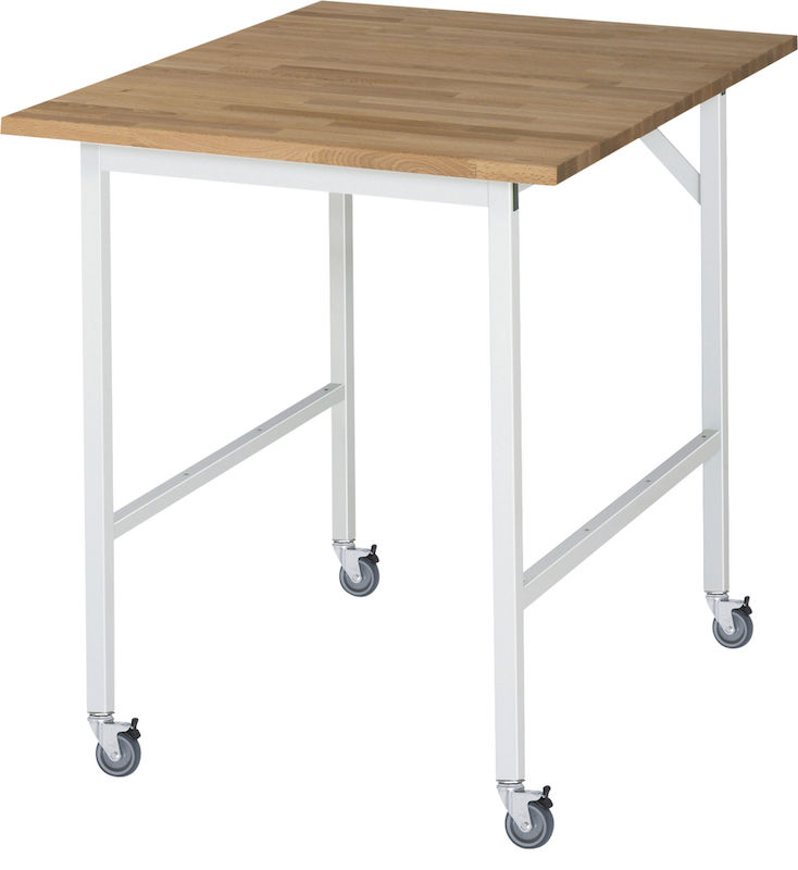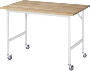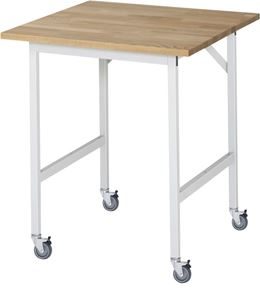 Arbeidsbord på hjul Nornor, treplate i massiv bøk, tykkelse 25 mm, 30 x 30 mm, BxDxH 750 x 1000 x 900 mm. De kjørbare arbeidsbordene egner seg perfekt ved skiftende innsatssteder i produksjon. lager eller verksted. Det stabile 4-fots understellet har i tillegg dybdeavstivning oppe og nede. Understellsføtter med avslutningselement inkl. høydeinnstilling og hjulsett, 4 svingbare hjul med brems (hjuldiameter 125 mm, konstruksjonshøyde 150 mm, slitebane i termoplastisk gummi (grå, non-marking, 85° Shore), hjulhus i polypropylen).