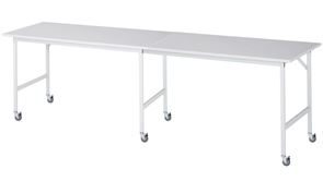 2 arbeidsplater 25 mm tykke, bøkestaver med fingerskjøtliming. Forkant med radius, resten avfaset. Overflatebeskyttet med miljøvennlig lakklinolje. Klassikeren blant arbeidsplater: belastbar, trykkfast, langlivet, naturlig, robust, vakker, slitesterk, gjenbrukbar. Tre fra bærekraftig og lokal hogst. Stativ med stativfotpar i profil-stålrør (30 x 30 x 2 mm) inkl. dybdeavstivning (oppe og nede).