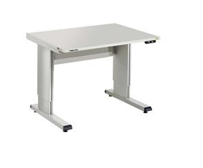 Arbeidsbord WB Eivind, med elektromotor, BxD 1500 x 800 mm. Stabilt stålstativ, pulverlakkert i lysegrå RAL 7035. benkeplate, 25 mm tykk, tosidig melaminbelagt i blendingsfri off-white (DIN 68765).