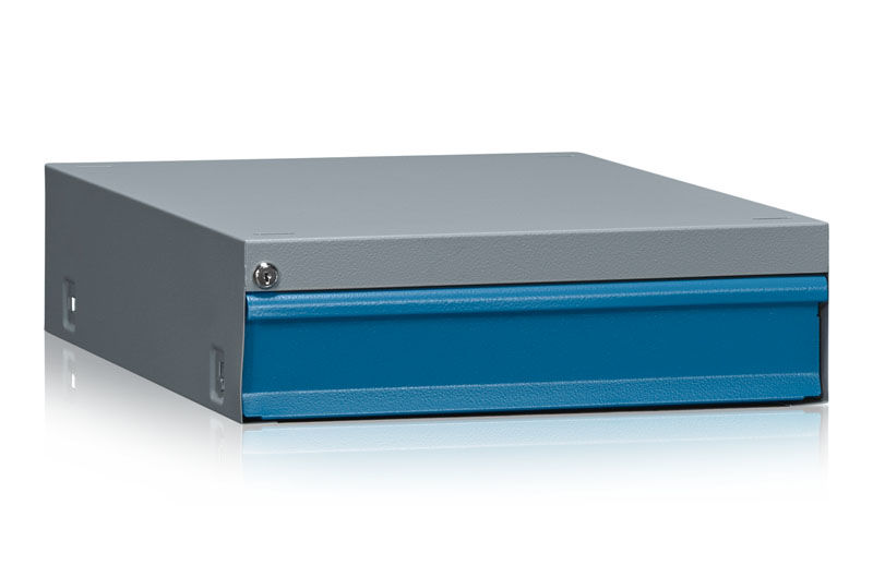 Skuffeseksjon Mist til arbeidsbord Tor, 1 skuff, BxDxH 490 x 670 x 150 mm. Kraftig konstruksjon i grålakkert stål. Skuffene har kulelager med 100 % uttrekk og et integrert bøyd håndtak i kraftig stål. Sentrallås i stammen, låser alle skuffene. Maks last 45 kg. Åpen topp. Festes direkte i platen (40 mm).