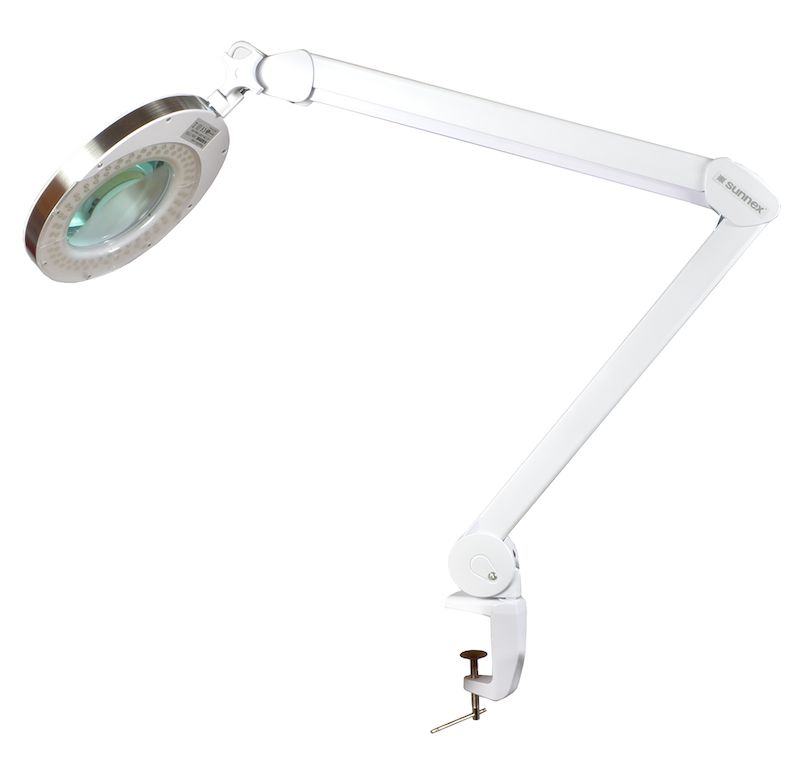 Forstørrelseslampe Sunnex SLM, LED. Forstørrelseslampen er perfekt for deg som ønsker å arbeide med presisjon under lyse forhold. Stort og klart forstørrelsesglass. 80 små LED-lys montert i et sirkelmønster rundt forstørrelsesglasset gjør arbeidet til en fornøyelse.