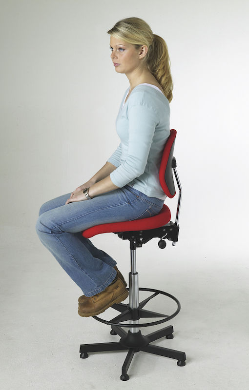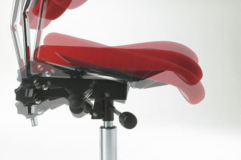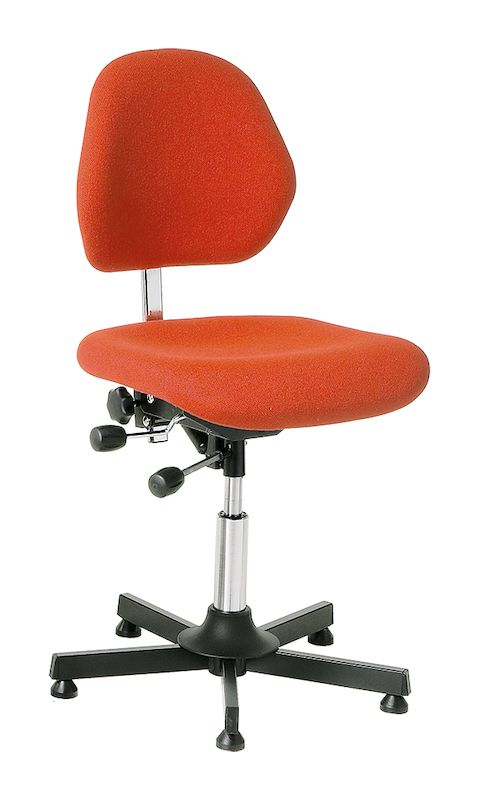 Arbeidsstol AEGA, lav med glidefot, stoffkledd, rød.Fleksibel arbeidsstol med unik mekanisme. Trinnløs innstilling av sittevinkel (12 grader fremover, 5 grader bakover) og av ryggplaten (16 grader fremover, 6 grader bakover). Ryggstøet kan også stilles inn i høyde og dybde. Skålformet sete, avrundet foran. Høydeinnstilling ±2%. Velg mellom kunstlær eller kraftig tekstil.