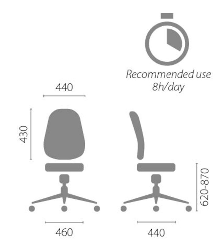 Høy med fotstøtte, anbefalt bruk 8t/døgn
