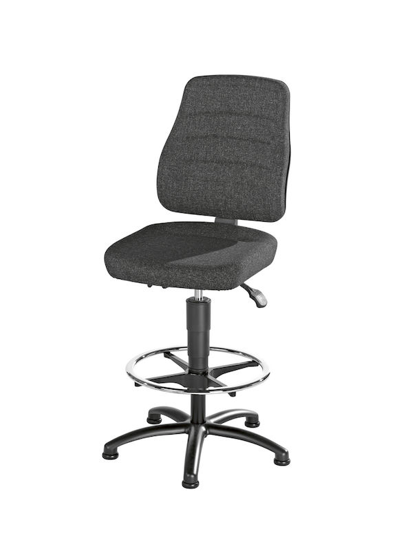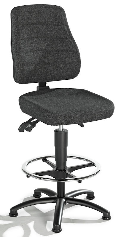 Setet og ryggstøtten er trukket med stoff som puster, er mykt og komfortabelt, og som er ideelt når det ikke forventes mekanisk påvirkning. Det ergonomisk formede setet kan justeres i høyde og tilt. Ryggstøtten kan justeres i høyde og vippes med permanent kontakt for optimal justering.