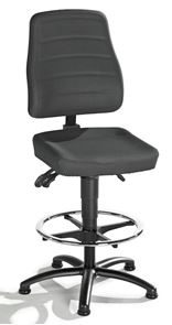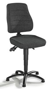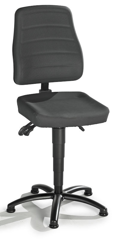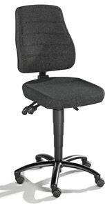Setet og ryggstøtten er trukket med stoff som puster, er mykt og komfortabelt, og som er ideelt når det ikke forventes mekanisk påvirkning. Det ergonomisk formede setet kan justeres i høyde og tilt. Ryggstøtten kan justeres i høyde og vippes med permanent kontakt for optimal justering.