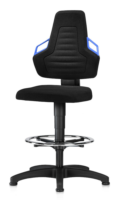 Arbeidsstoler Bimos Nexxit, med håndtak, med glideføtter og fotring, tekstil. Denne komfortable arbeidsstolen med permanentkontakt mekanisme imponerer med sin komfort og ergonomiske egenskaper: Det ekstra store rygglenet har korsryggstøtte og polstrede puter som gir maksimal sittekomfort og et optimalisert mikroklima. Det kan justeres i vinkel og høyde for å passe til individuelle behov. Rygglenet er avsmalnende mot toppen med integrerte håndtak. Dette muliggjør fleksibelt arbeid og enkel forflytning.