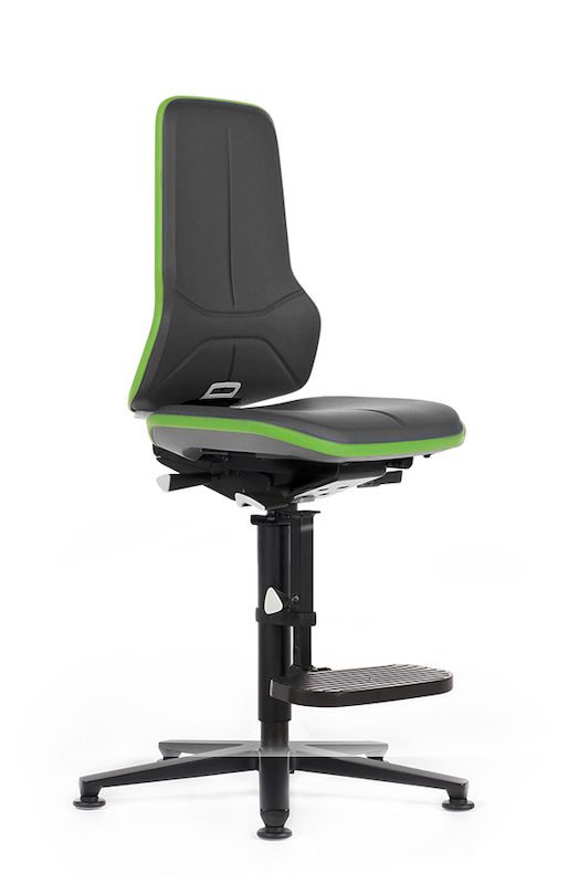 Arbeidsstoler, glideføtter, oppstigningshjelp Elena, synkrongynge, kunstlær, fleksibånd grønn. Sete og rygglene valgfritt med