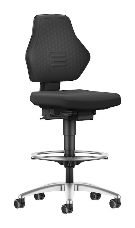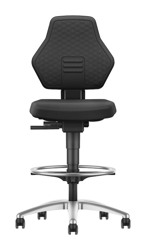 Arbeidsstoler Johan, med hjul som ikke ruller ved belastning, og fotring, stoff svart. Arbeidsstolen er den pålitelige arbeidsstolen for alle produksjons- og laboratoriumsarbeidsplasser. Den innovative Air-Flow-effekten sørger for det beste arbeidsklimaet. Sammen med komfortpolstringen og den omfattende ergonomipakken er den en intelligent følgesvenn gjennom arbeidshverdagen.