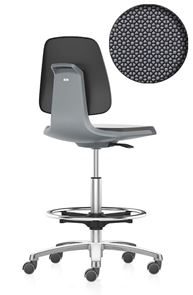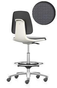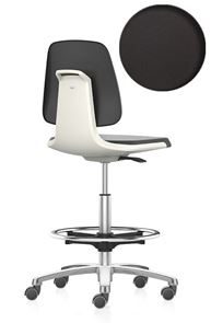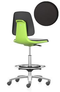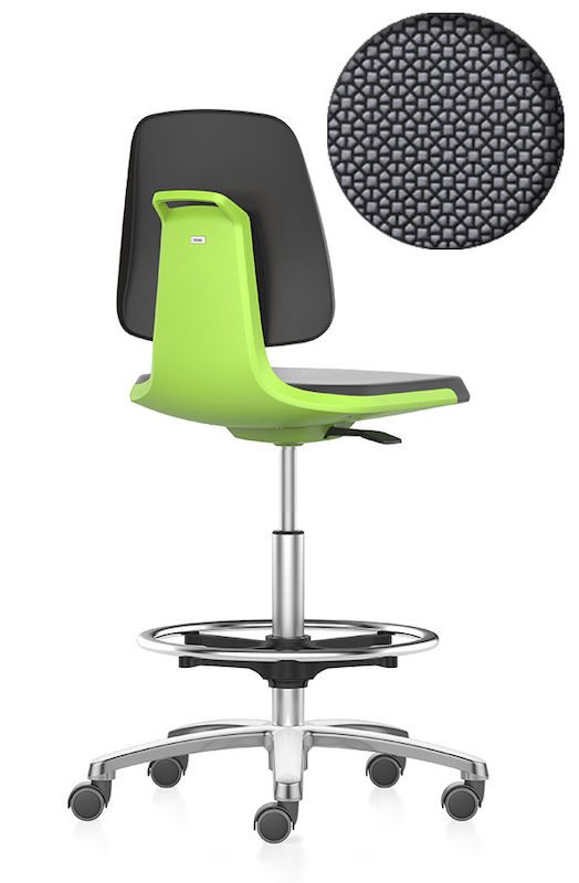 Arbeidsstoler LABSIT Bimos Labsit, med hjul som ikke ruller ved belastning, og fotring, sete Supertec, grønn. PU-skummet er ekstremt motstandsdyktig mot mekanisk belastning, er lett å rengjøre og tåler desinfeksjonsmidler. Stofftrekket gir høy sittekomfort fordi det puster og er behagelig å sitte på. Kunstlærtrekket er komfortabelt, lett å rengjøre og tåler desinfeksjonsmidler. Supertec®-trekket har en nubbete struktur og er ekstremt motstandsdyktig mot slitasje og kutt.
