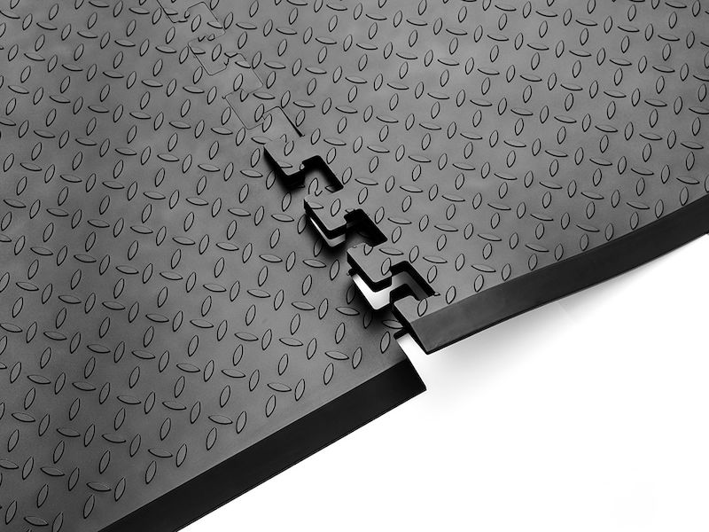 Matten er laget av polyuretan og er svært behagelig å stå og gå på. Den mønstrede oversiden gir god sklisikkerhet, og de skrå kantene minimerer faren for å snuble.